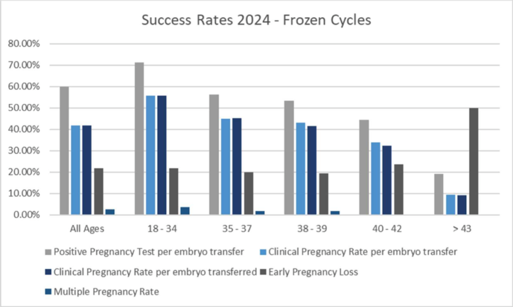 We closely monitor outcomes and advise you on the number of embryos to have transferred in order to maximise your chances of a healthy singleton pregnancy. This often results in surplus embryos following your treatment. If these embryos have been graded as being of a good quality, it is recommended that you freeze them for potential use in the future.