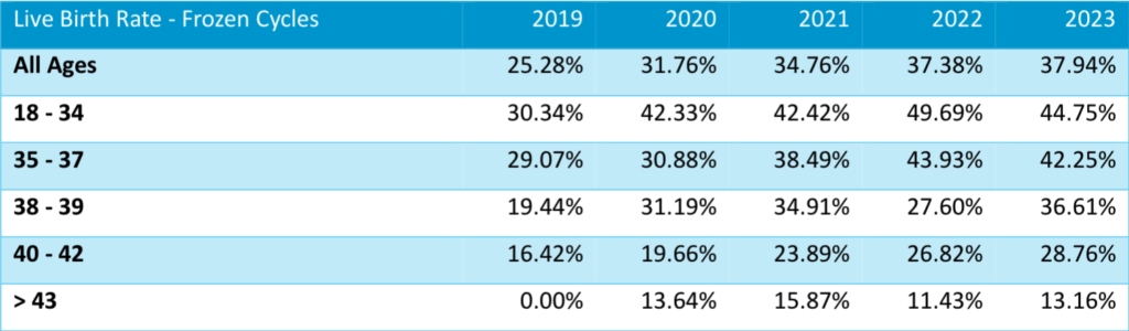 Furthermore, the length of a pregnancy means that this data lags by a year behind our most recent pregnancy rates. Therefore, our most recent complete set of live birth data is for 2021, as we are not able to collect yet all the live birth data resulting from our treatment cycles that started in 2022.